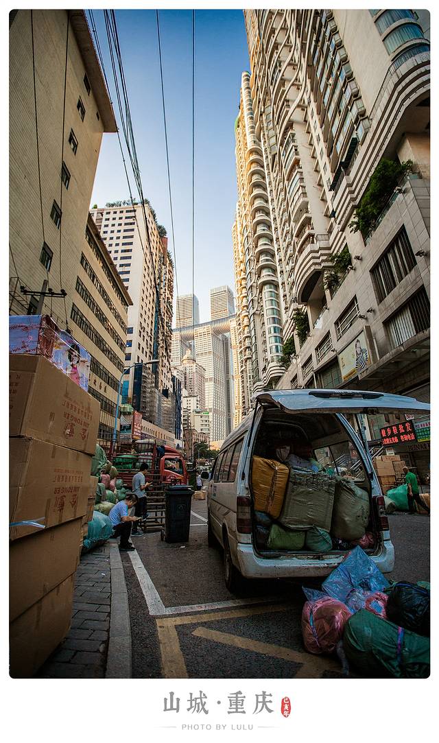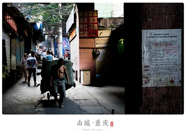 再次穿梭在重庆朝天门批发零售区里的小街巷子里,时间不早,很多铺面都关门了,但是运送货物的人们依然还在工作着