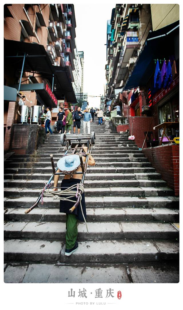 在这里街道顺山势而建,人虽在城中行走,身却在山中穿过。因为水运和山城的缘故,在这里有大量的货物还是依赖人工转运,所以山城的棒棒军是重庆这座城市特有的一道风景线。