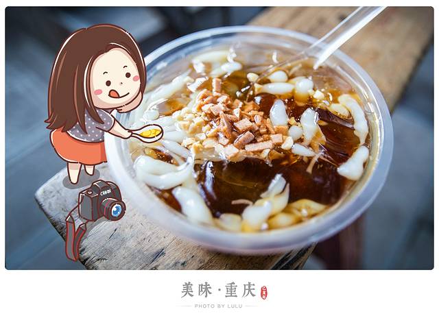 在我们观看长江索道的这个巷子里的小平台上,有个重庆人推着小车车在卖四川地方特色小吃---冰粉!!!自从之前在成都吃过冰粉,我就深深爱上这道小吃~成都和重庆冰粉有什么区别,必须不能错过呀!!