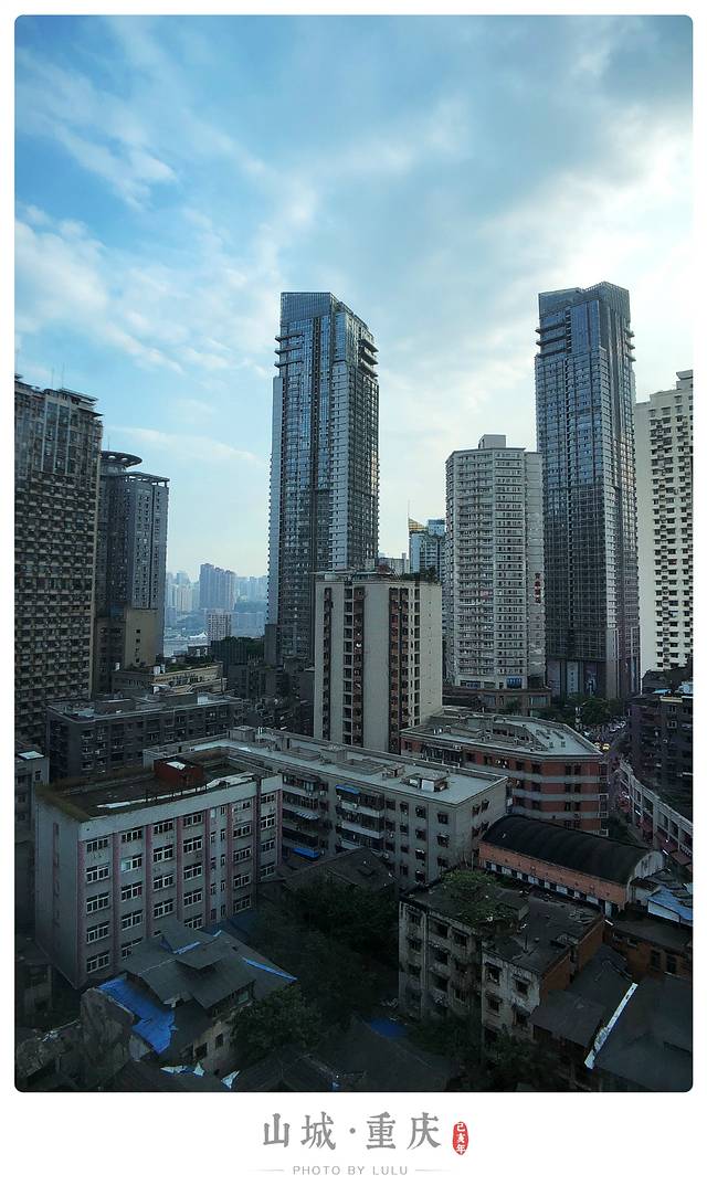 从酒店房间看出去,会看到重庆市高楼林立~其实我们这次来重庆,天气真的超给面子,除了蓝天白云,温度还不热,本来出发之前是抱着来大火炉的心理准备的,谁知道温度一点也不热,重庆超给面子~