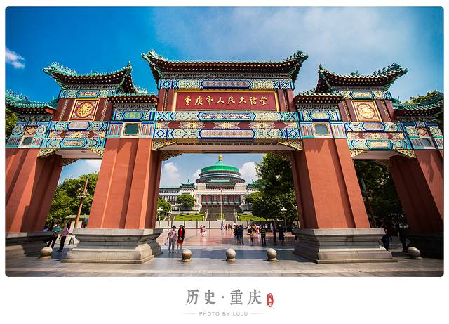 重庆十大文化符号之一的重庆市人民大礼堂,是中国传统宫殿建筑风格与西方建筑的大跨度结构巧妙结合的杰作,也是重庆的标志建筑物之一。而重庆中国三峡博物馆就在他正对面。拍照打卡!!转头博物馆去!