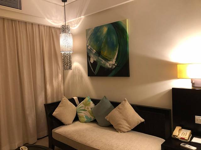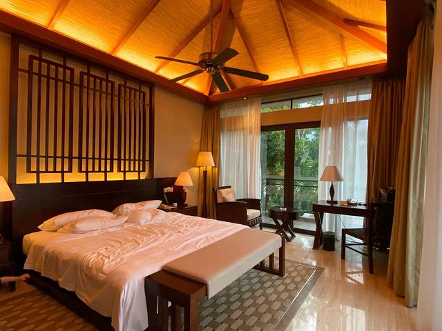 宁波直飞三亚只有晚上的航班,已经做好了延误的心理准备,果不其然延误了1小时,11点落地三亚凤凰国际机场,即便已经接近凌晨三亚机场打车依然很方便,手机打车2分钟不到就有司机接单,无论T1还T2航站楼达到 都需要走到国内3号达到口对面的停车场等车。因为晚班机所以我前两晚的住宿订在三亚湾的老牌五星酒店 国光豪生