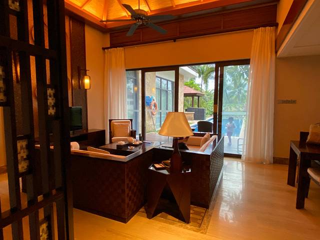 我是出名的酒店控 尤其是带孩子的旅行我对住宿的要求就更高了,来海边度假 海景房当然是必不可少的。每次带孩子出游都会纠结住哪里,这次为了让她感受不同的住宿环境我选择了2晚180°海景房+复式泳池别墅的住法。虽然比连住同一家酒店要折腾些,但是收获更多的的快乐也是值得的。