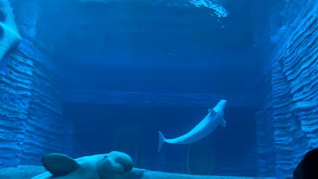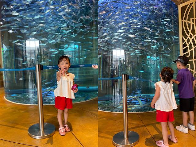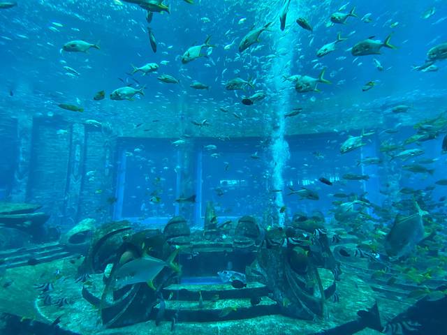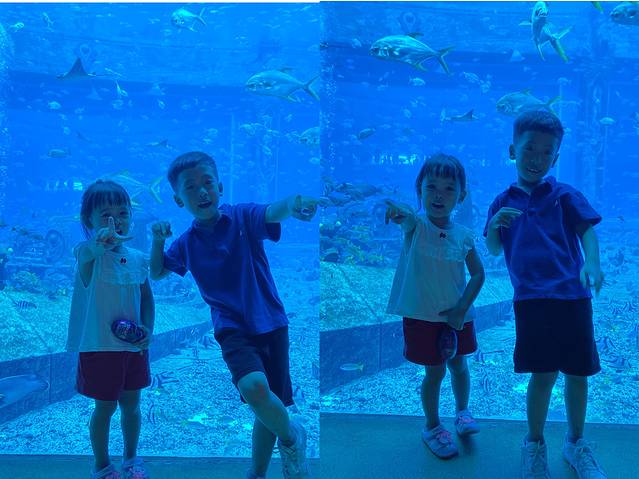 亚特兰蒂斯水族馆最大的特色就是这个大玻璃墙了,里面光线比较暗 我们还来了一场华为p30pro和苹果11画质的比拼,最后在背光拍照这一块苹果11完胜。水族馆里面会有工作人员用单反帮忙拍照,因为里面光纤比较昏暗手机拍出的效果不是很好,这也就是很多人为什么在大玻璃墙那里只拍背影的原因,在出口处可以去挑选你的照片,当然这是有偿服务哦,有很多种套餐由你选择,我做了一个全家福的水晶球 底片工作人员会给你一张卡片登陆网站下载,额 ,这个卡真的是有点麻烦