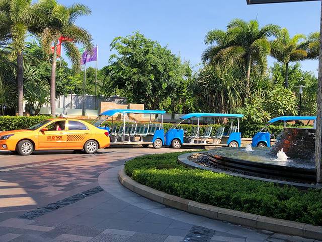 蓝色这款电瓶车是从酒店接送至 亚龙湾 沙滩的,早上7:30-19:30免费接送,从酒店大堂发车10分钟一班,要从沙滩回来可以提早打电话车子会开过去接。