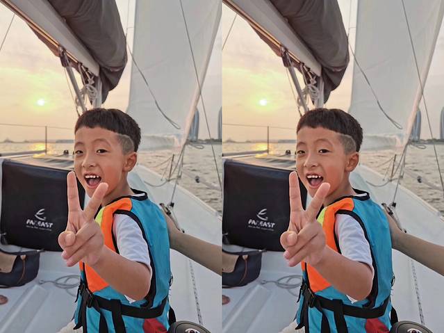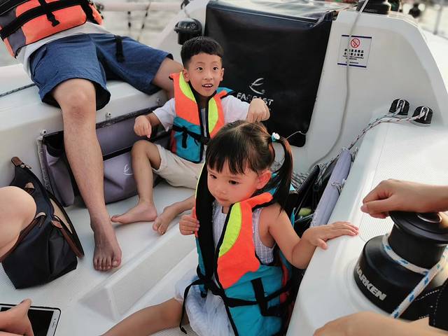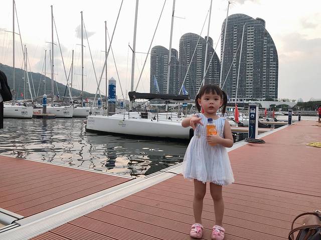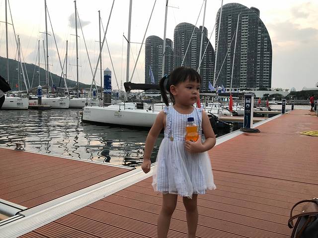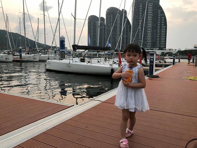 三亚有很多游艇出海的地方,我们这次是在大东海的游艇会出海,四大两小独立一艘小帆船,下午五点半出海幸运的话是可以看到三亚湾的落日的,刚开始上船的时候琪琪(我女儿)还表现的很开心一路高歌,帆船启动后慢慢变得安静了,作为老母亲的我知道 这下不对了赶紧抱起,快到海中央的之后狂哭要回去,原来是帆船马达的声音吓到她了,琪琪很少哭一单哭起来绝对是后劲十足,哭的不是很凶 但是一定很认真。