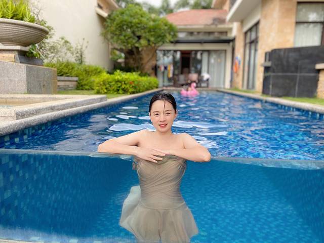 爱游泳的琪琪特别喜欢跟我住酒店,我带她住的酒店都是有室外泳池的,导致她的认知里面酒店都是有大泳池可以游泳。