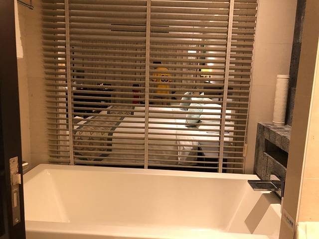 窗帘隔断的浴缸