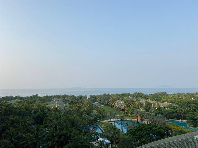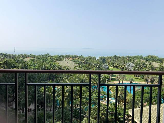 国光豪生酒店180°至尊海景房在阳台上直接能看到三亚湾的一线海景,这次忘记提早打酒店电话预留高楼层房间的事情 不过6楼的房间视角也是不错的。