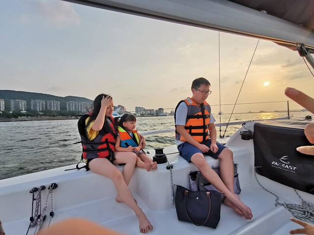 午睡后前往期待已久的帆船出海,特意定了下午五点半出海的船满心期待着三亚湾落日。