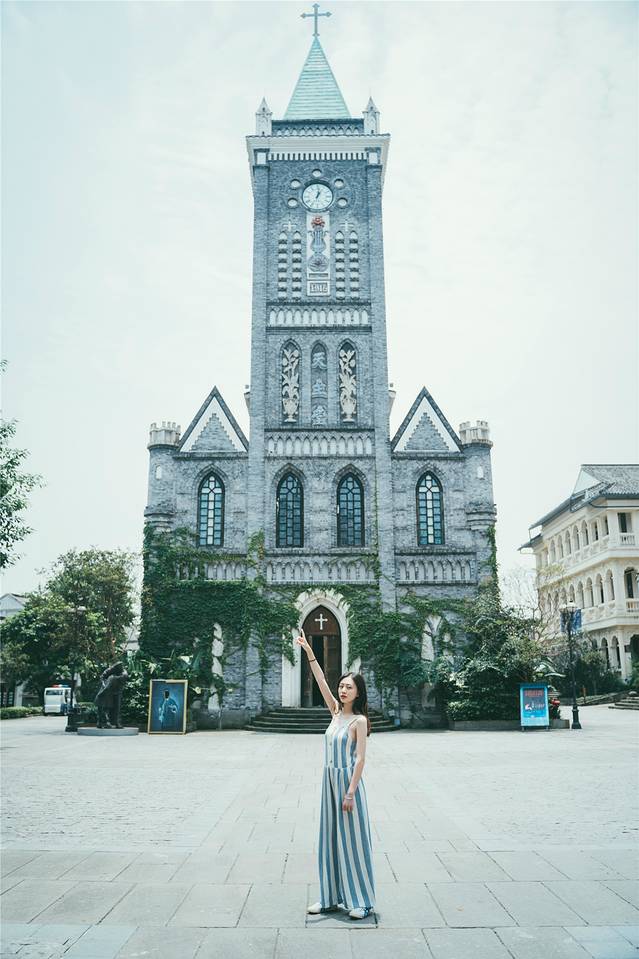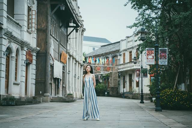 既然到了重庆一趟,就想着打卡重庆拍照圣地民国街啦!其实这边是一个影视城,很多具有民国风味的建筑,特别又味道,很浓郁的巴渝风情!我特别选了一条蓝白吊带裤,配合民国街里纯白的教堂,复古的装潢拍照,有种回到民国时代的感觉~特别有情调