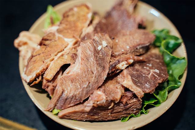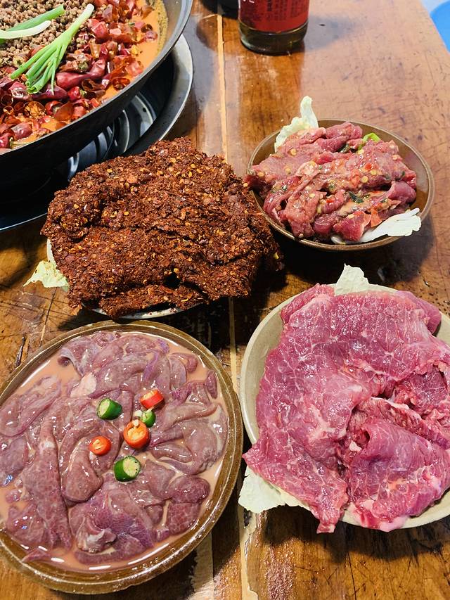 现切牦牛肉,这个牛肉好嫩~不知道是不是心理作用,我觉得比之前吃过的牛肉都嫩,而且大白说牦牛肉很营养,吃了不会胖哈哈哈哈我赶紧多吃几块!