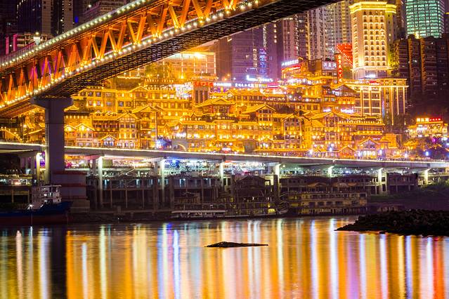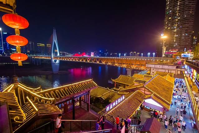 重庆可以说是一个打破二次元和三次元结界的城市了,最出名的标志建筑应该就是洪崖洞了,这最闻名的就是千与千寻的现实版场所了~在夜晚灯光亮起的那一刻,真的好像进入了一个异次元空间,美得不像话,宛如一个童话世界,不过人真的很多~就算不是热门假期过来也是人潮如涌,谁叫洪崖洞那么美呢