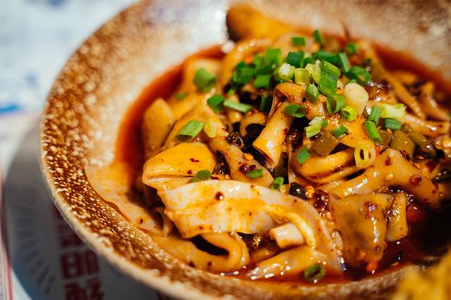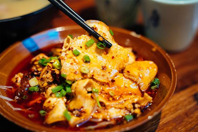 这满满的肉让我都不由得惊呼一声!我的妈呀。这就是重庆老板的特性吧?特别大方!这肉快比脸还大了!再看看价格,老板真的是不会亏本吗~他家光是牛肉就有好几种,铺满了辣椒的是麻辣牛肉,真的是特别特别辣,我算是很能吃辣的都折服在他家的麻辣牛肉之下了,让我也为重庆朋友的吃辣能力点个赞!