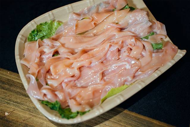 看这料多实诚的肉肉,虽然是瘦肉但是一点都不柴,反而很嫩,带点筋的嚼感刚刚好!我是爱上这个肉了,不怕胖的吃了好多,特别是烫完的味道,神仙味道!