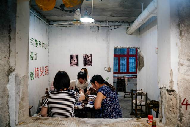 这家楠火锅是来重庆之前,大白询问了他重庆朋友重庆吃什么好,他朋友极力推荐的一家火锅,还好他跟我们说了详细的地址,不然不是本地人可能真的找不到呢!这家火锅店就开在居民楼地下,颇有点隐世高手的感觉~一进店就感觉到很地道的重庆氛围,来来往往的都是重庆本地人,操着一口重庆方言互相打趣,店里没有空调,环境也是很有90年代的感觉,看着重庆大爷大叔坐在旁边大快朵颐,看来真的是一家本地人非常喜欢的火锅店!