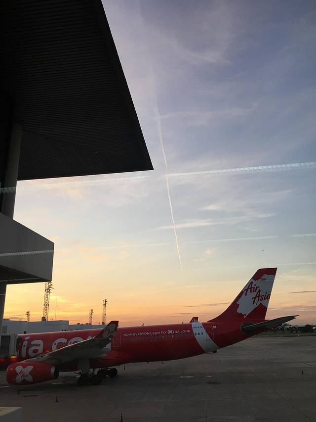 中国北京时间和泰国是有一个小时的时差呢,途径3个小时到达泰国廊曼机场,朝阳已经开始升起