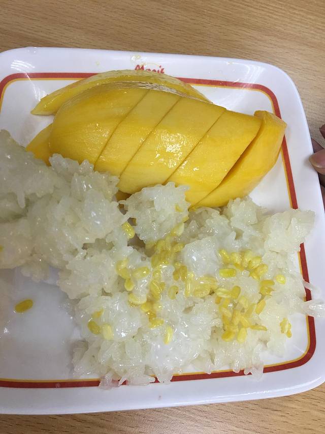 随后领队发给了大家一堆餐券,价值200泰铢(到了机场附近的小餐厅随便吃)哇哦,看着那标记的以泰铢为单位的广告牌,才知道自己到泰国啦,尝尝有众多好评的芒果糯米饭,味道还不错哦