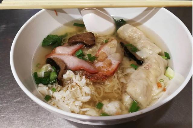 蛋面有虾混沌、叉烧、 蟹、 香菇 20元