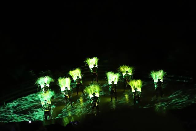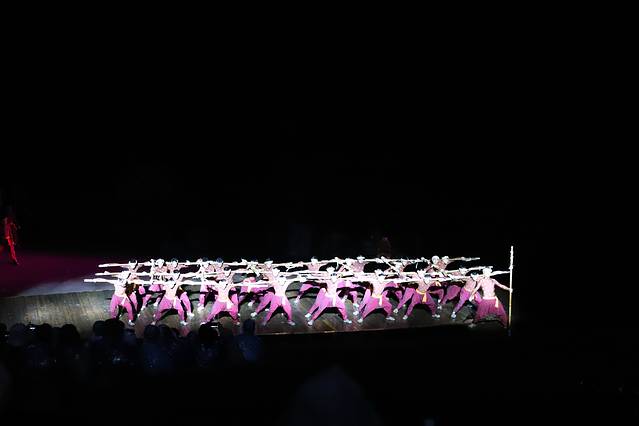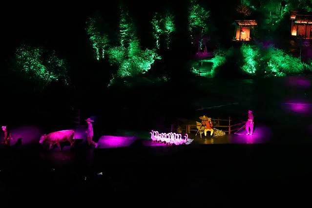 每每纤夫的演出对话说到“没了,全都没了”的时候,我的眼泪完全就不听使唤了,泪水不断涌出来,心里有点痛。新时代的到来,机器船代替了人工拉船,让拉了一辈子船的纤夫们心里还是很不舍得。在写这里的时候,回想到演出里,我还是会心痛流泪,演出确实是打动到我了,这种感觉忘不了。
