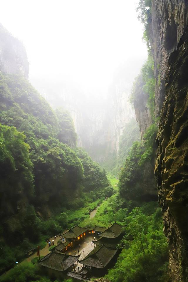 站在天坑的台阶向下俯瞰,它就像世外桃源一样的存在。
