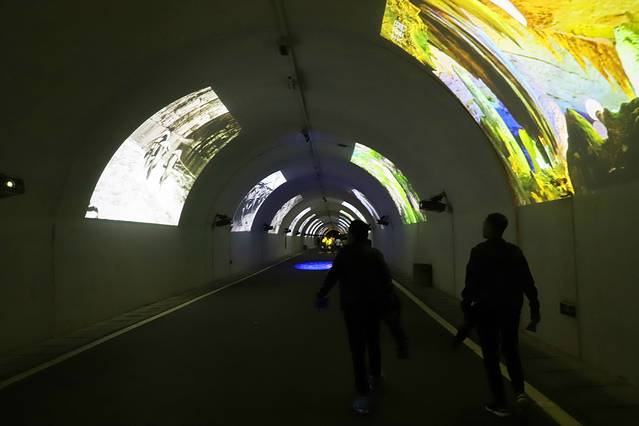 进了检票口之后,要通过一段时光隧道,隧道里有做投影设计,可以在两侧墙壁和地上看到不同的动态图片,唯美梦幻,仿佛穿越了。这种设计应该也是看演出前的一个预热,大概知道一下演出讲述的事情,更容易融入到演出中。
