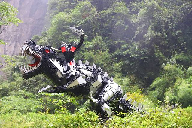 出了官驿,沿着景区的道路一直向前走,大约5分钟路程,还能看到保留的一处变形金刚,造型做的真的是够逼真,很多人会选择在此拍合照留念。
