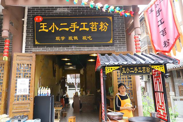 除了欣赏游玩,古镇还有很多特色的小吃一定要尝尝,最有名的是羊角豆干、红苕粉,羊角豆干有多种口味,我觉得微辣的更好吃。要吃红苕粉,这家店可以自己体验做红苕粉,自己动手丰衣足食,吃起来也更香,被说这家店的红苕粉的味道不赖呀,你们来了一定要试试。