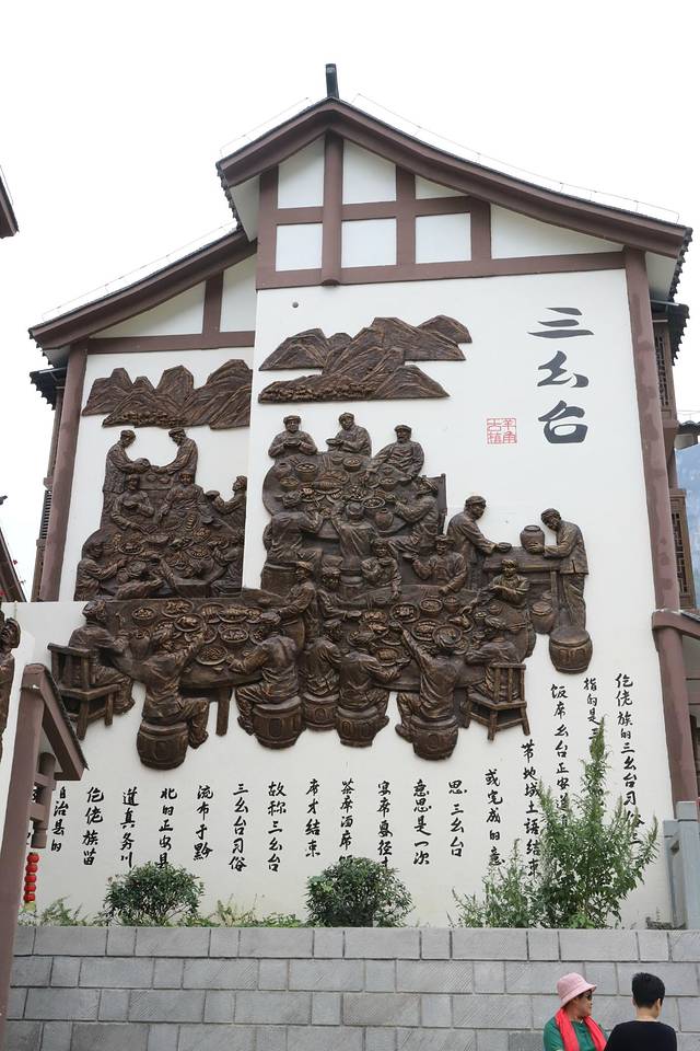 当时去的时候,古镇的游客不算太多,稍微有点冷情,如此却显得古镇更加的安静,很适合漫游。边走边感受关于古镇的气息,中间道的墙壁上做了很多壁画,路上也有人像铜雕,效果都特别的逼真,以此来展示当时人们的生活状态。