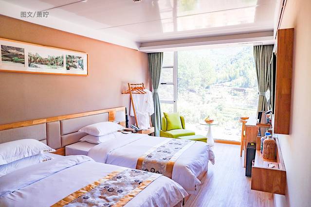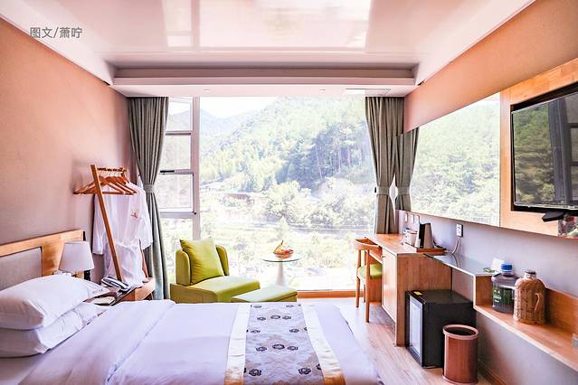 好一片田园风光,这也许就是我们向往的诗。抵达古溪星河,已是正午。先办理入住揽月山房,再吃个尤溪菜。揽月山房,最有特色的莫过于这3米高的落地窗,视野开阔,将山景尽收眼底。