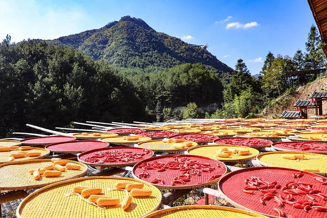 登悬空的仙手彩虹桥,漫步田间小道,夜赏满天繁星,近距离接触孔雀等其他动物。若遇上金秋,还能看晒秋及漫山的红枫。