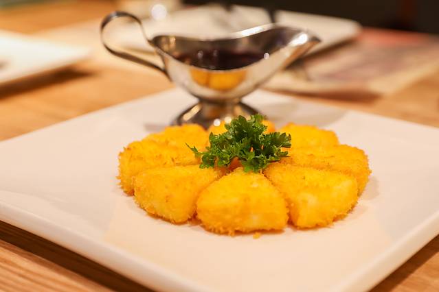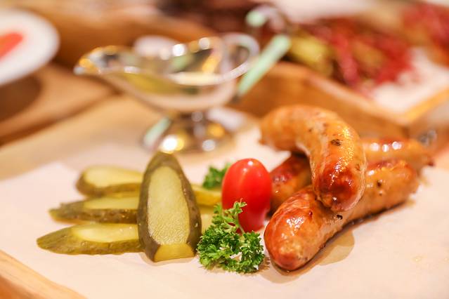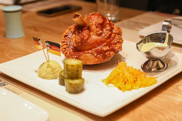 脆皮肘子真是心头好,外皮金黄酥脆,内里鲜嫩多汁,肥而不腻。德肠配酸黄瓜,绝对是精酿啤酒的最好搭档。德式炸奶酪吃起来让人特别满足,奶酪外面包裹面包糠,炸制之后金黄的颜色特别好看,咬上一口,奶香超级浓郁。橄榄油煎蘑菇非常健康,加入迷迭香调味料,有一种让人迷恋的神奇香气。