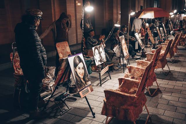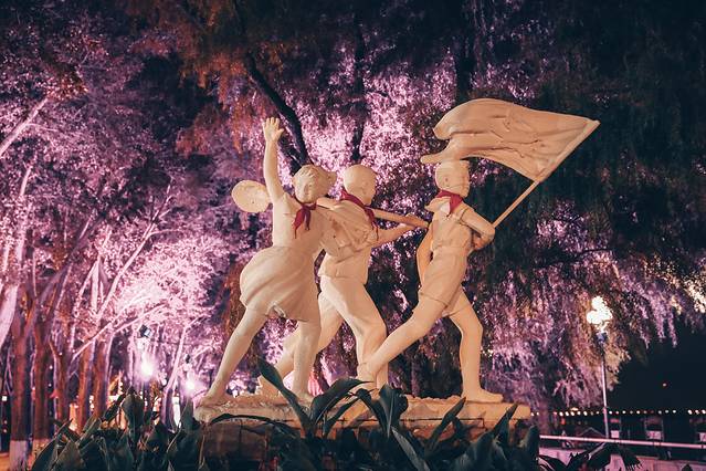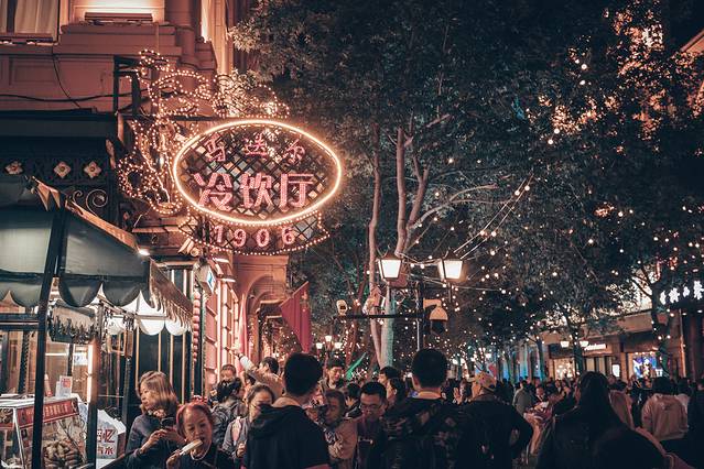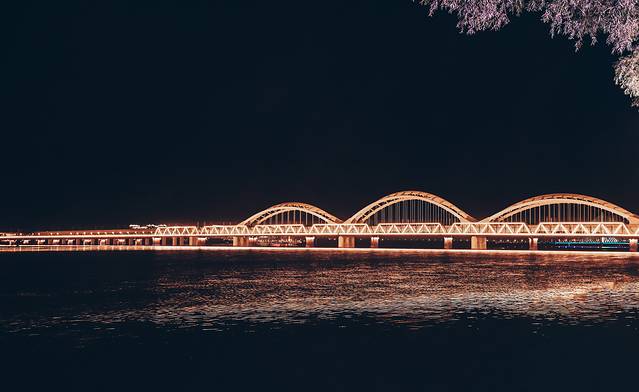 每到夜晚中央大街被灯光渲染得流光溢彩,在夜幕下的景色异常迷人。马迭尔冰棍的摊子前人依然很多,只是不像白天那样排起长长的队伍。开阔松花江上的游船闪烁着霓虹,格外耀眼,吹吹夜晚凉爽的风观看灯火辉煌,着实惬意。