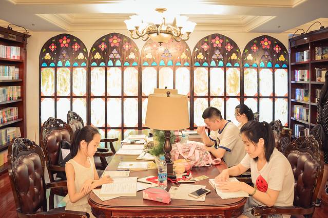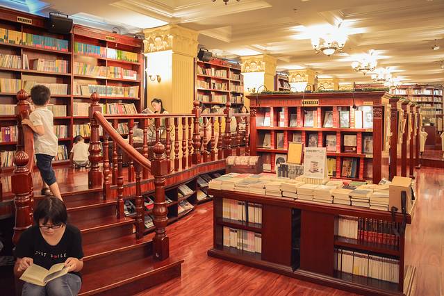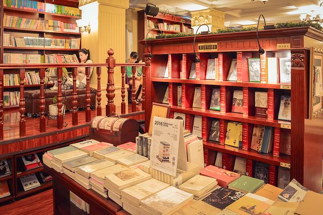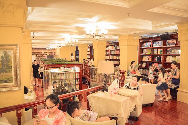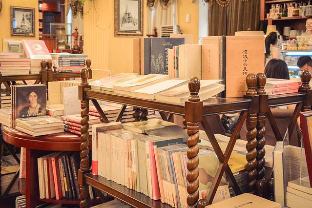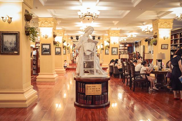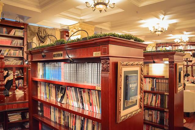 三楼是会员读书区,人少且清净,进去参观了一下,书籍的数量要比二楼多很多。中间的大堂有很多的坐席,据店员讲解说可以提供餐饮和特色的婚礼服务。逛了一圈之后选了几本图书,在纪念品商店买了几张明信片寄回去留作纪念。