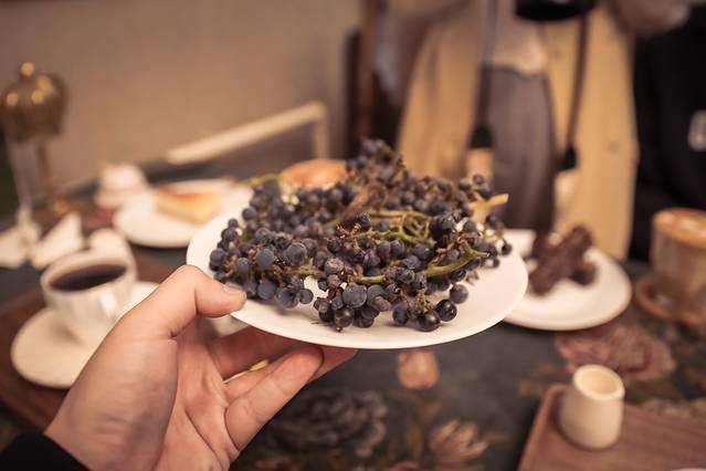 下午去了78号老房子咖啡馆,这栋建筑有一百多年的历史了,但更吸引我的是院子这株七十多年的葡萄藤。正好葡萄成熟,小姐姐和店员一起到藤上采摘葡萄招待我们。