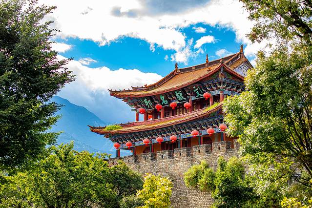 大理古城,历史悠久,古城周围名胜古迹众多。南诏国与大理国都在此建都,原址在现大理古城西侧及中和峰下的山麓缓坡地带。大理古城南门外,清代还有一“文献楼”,是往昔迎送贵宾之处。登临台而望,鹤桥小路,鹫岭夕阳,熙来攘往成安业,但愿妙香古国常驻于和平世界中。