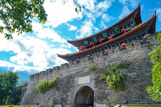 此刻,我们终于抵达大理古城。大理古城简称榆城,又名紫城。始建于明洪武十五年(1382年)。当时的大理城规模宏大,方围6公里,城墙高约8米,厚约6米,东西南北有四座城门,城门上有雄伟的城楼。明清两代是大理卫指挥使司、金沧道台署、大理府署、云南提督府、迤西道署和太和县治所在地。