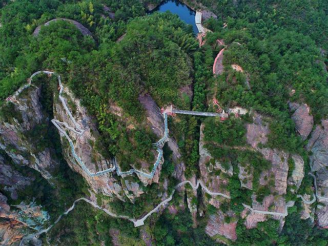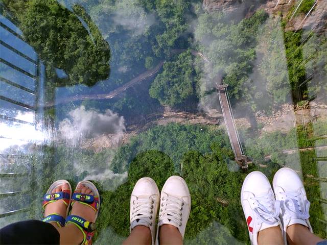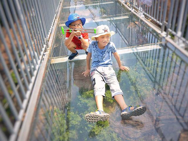 其中还镶嵌一段玻璃栈道,胆小的人真是进退两难