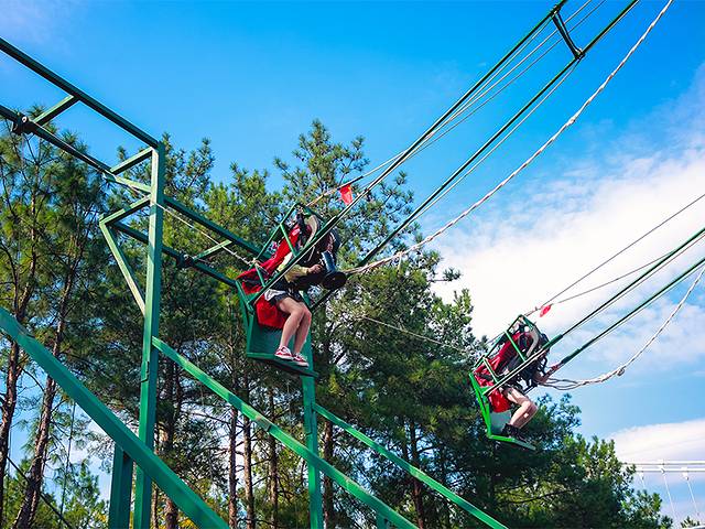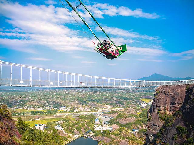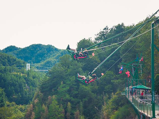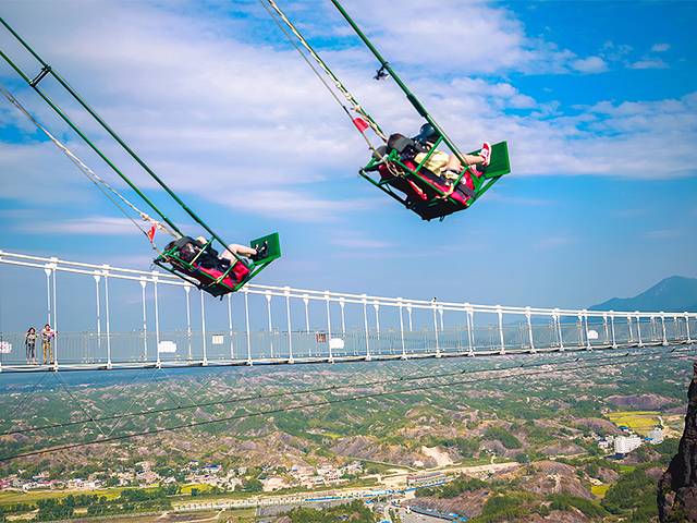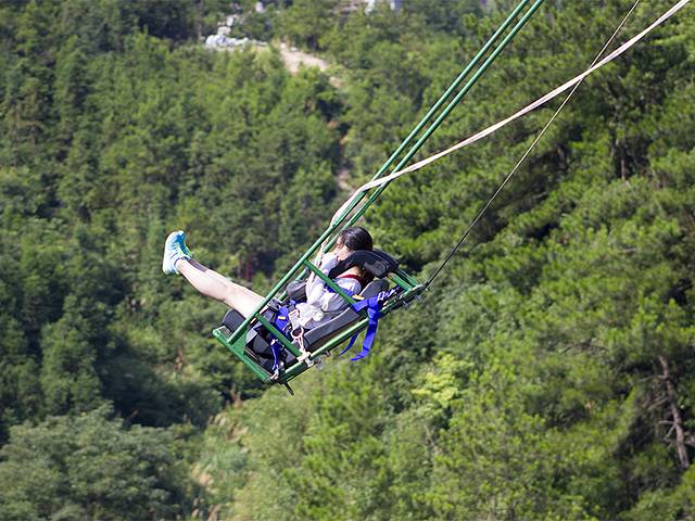 是谁说摩天轮的每一个格子都装满了幸福,这个类似于摩天轮的飞椅简直太吓人!距离地面峡谷垂直高度300余米,坐上飘椅,360度欣赏高空美景,体验云端漫步