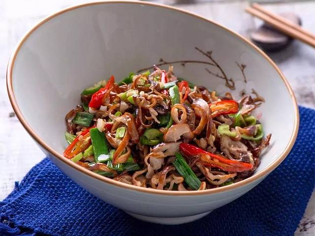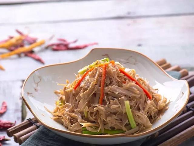 以平江传统的制豆腐工艺磨出来的百叶丝软糯而豆香满口,是货真价实的色香味俱全。