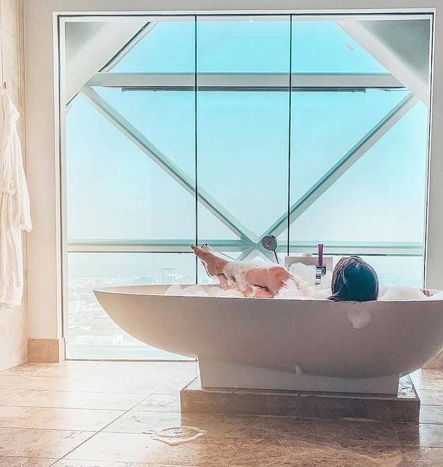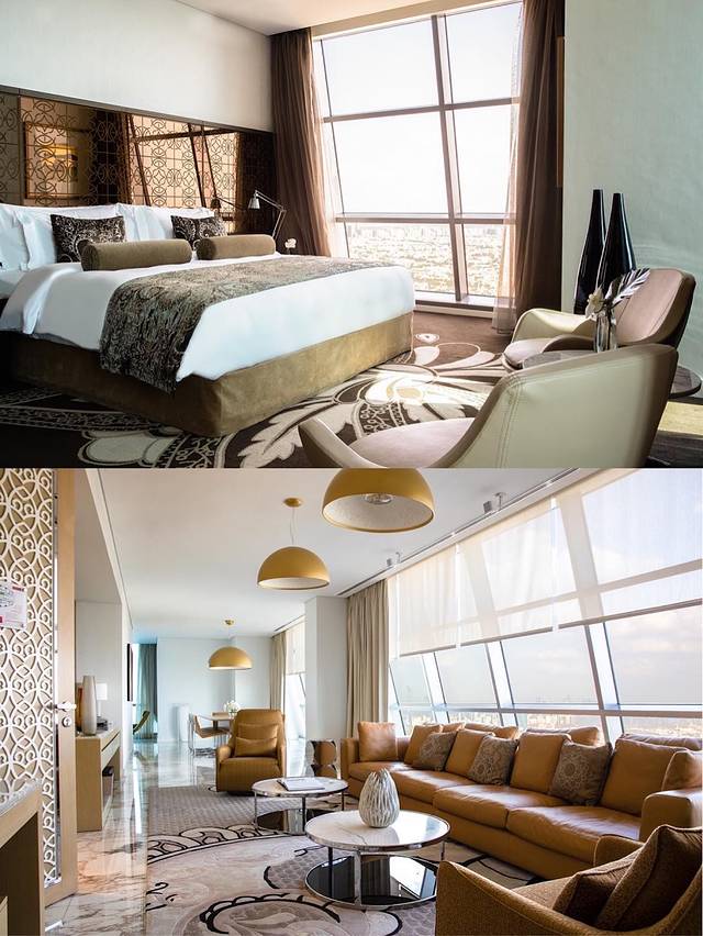 跟其他阿拉伯风情的酒店相比,这家相对来说会比较现代化科技感,这里强烈推荐去看看大堂以及74楼的风景,无比震撼!还能远眺到正对面是阿布扎比的皇宫酒店哦~房间奢华又舒适,面积很大~