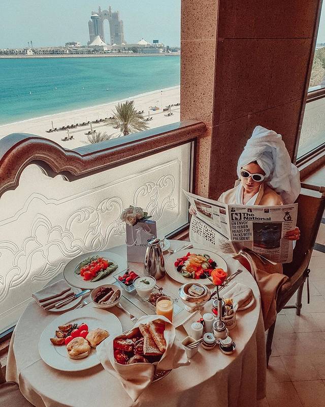 酒店位于一个私人海滩上,在这个酒店就可以欣赏到阿布扎比海峡的全景,非常壮观美丽!酒店的豪华房间是以现代阿拉伯风格的装潢为主,每一个房间都拥有温馨而丰富的色彩以及别致而典雅的家具陈设~配备了享有花园或阿拉伯湾景致的阳台或露台,在这个露台去拍照会非常好看!