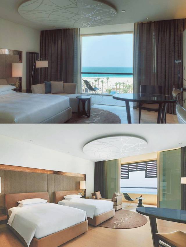 阿布扎比柏悦酒店无疑占尽了地利,从酒店房间就可一览蓝白交接的多姿海岸线,超美!!与柏悦一贯的清冷作风不同,或许是温暖的海水加持,这座柏悦竟散发着一种自带柔光的亲切感。棕榈树荫下直通海滩的超长泳池是阿布扎比柏悦的look~ 房间的风格奢华又简约~每间房间都能看到超棒的景观,可以眺望波斯湾哦~