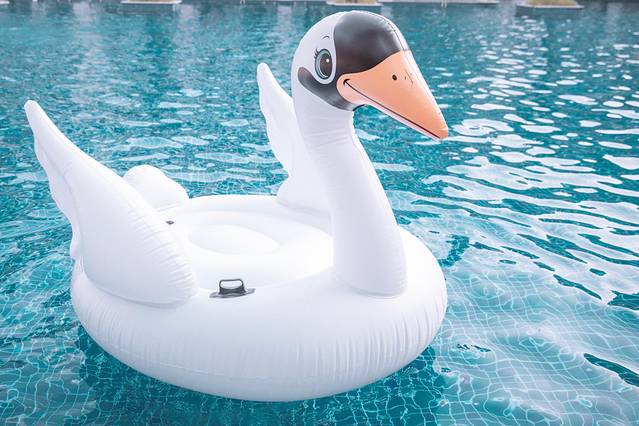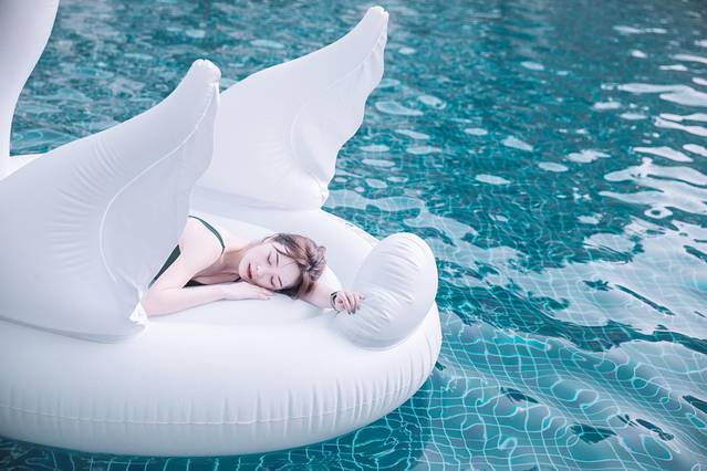 小憩片刻后,便忍不住想要去泳池玩玩水,住在亲水区最方便的就是可以直接下楼到达户外泳池区。泳池面积够大,水深大约就1.5m左右,可以放心游玩。还有贴心的准备了各种好玩的“道具”,火焰鸟、天鹅、独角兽什么的,少女心满满、童趣十足。放松身心坐着最爱的透明船,划到泳池中央去,随波浪飘荡,惬意又潇洒,难得这么无拘无束。