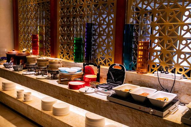 餐厅的环境与昨晚的西餐厅不一样,似乎更多了一份“家”的感觉。造型满分的中式糕点,清凉解暑的甜品,食欲大开的中式菜系,精致又美味。每一口咬下去,都是对味蕾的满足。琳琅满目的菜品,总能找到一款心仪的,而且每次来都会有不一样的新菜品,给人惊喜。
