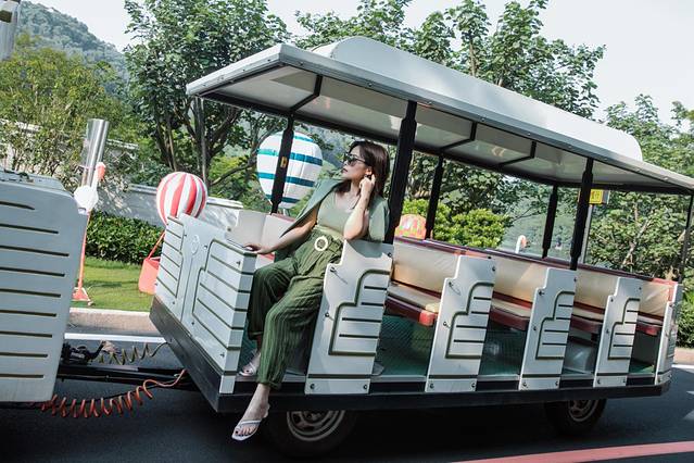 早前看到酒店大堂外有一辆小火车,外形很童话,可以载着住客绕着酒店观赏,还能停下来拍照,于是正巧趁着早上太阳还没那么热,乘着小火车逛一逛四周。