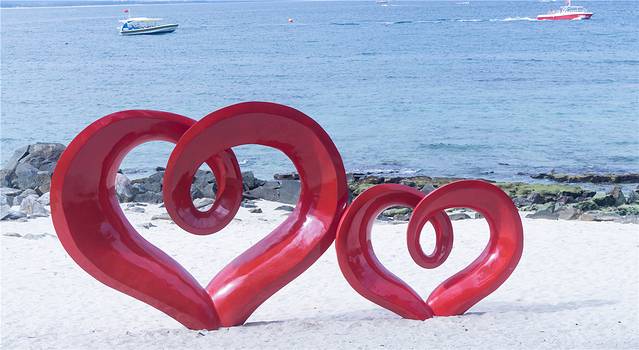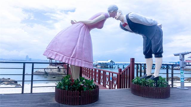 情人桥是我们在岛上的第一站。在桥的起点,有一对情侣的塑像——当时是摇摇晃晃的铁索桥,有时候女性走在上面时会紧紧抓住朋友的手不放,也许促成了很多佳偶,也许让关系更亲密无间,因此也被戏称为“情人桥”。后出于安全考虑,铁索桥改造成如今的木板桥。