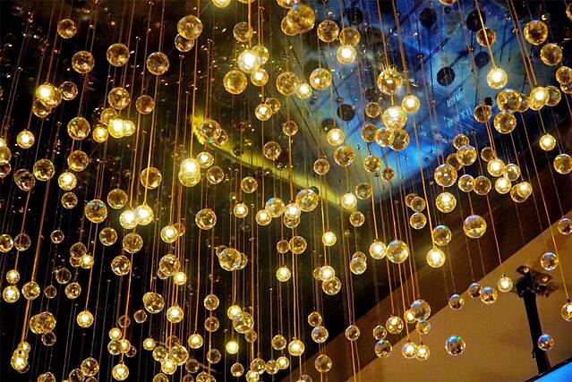 一进入酒吧,瞬间安静的氛围让人不自觉地放松下来,吊顶的星空灯形成了一条璀璨的银河,边上就是陈列着各式各样的高档洋酒的吧台,择席而坐,会有身着得体制服的服务生把酒单送上。
