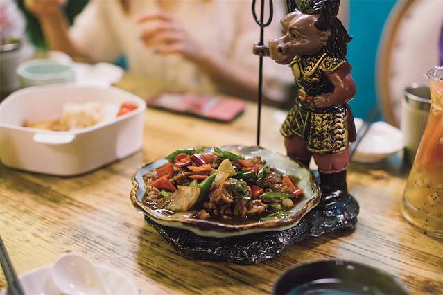 另外五指山小黄牛肉很有意思,盘子的边上是一个拿着叉子的牛魔王,仿佛怒目圆睁地瞪着每一个看他的人,不过就算是这样我们也还是要毫不犹豫地夹他面前盘里的菜,毕竟吃最重要嘛!