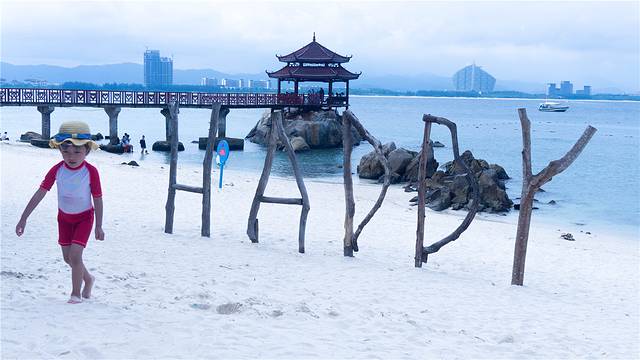 边上就是洁白的沙滩了,不得不说这里的海水是真的非常清了,完全就是中国的“马尔代夫”,脚踩在细软的白沙上,感受清澈的海水拍打在脚背,让人忍不住有想拍照的欲望,果不其然,光是拍婚纱照的团队都遇到了好几个。